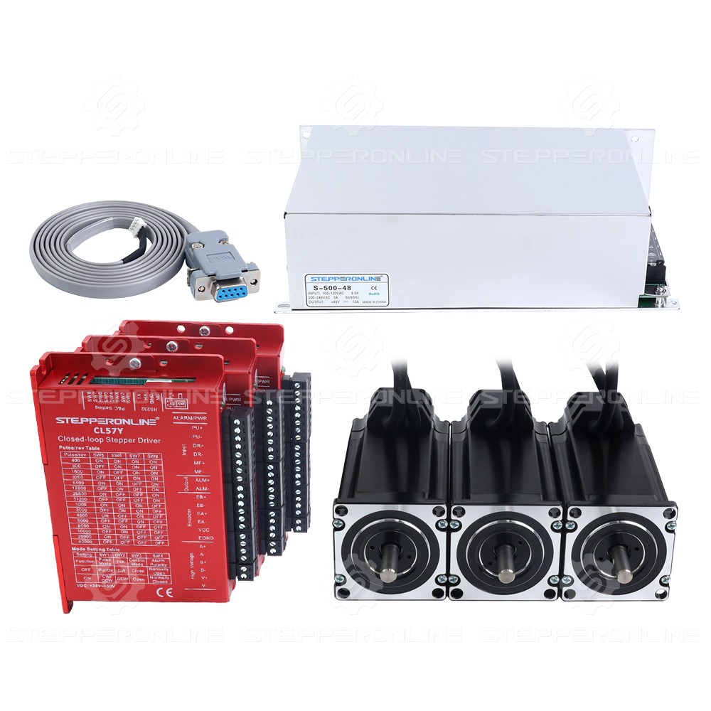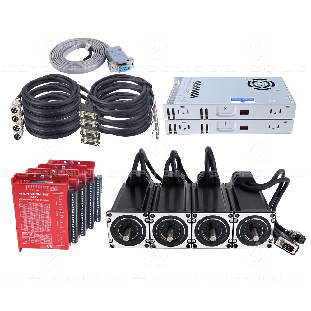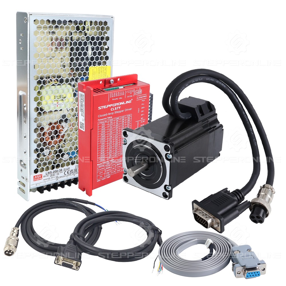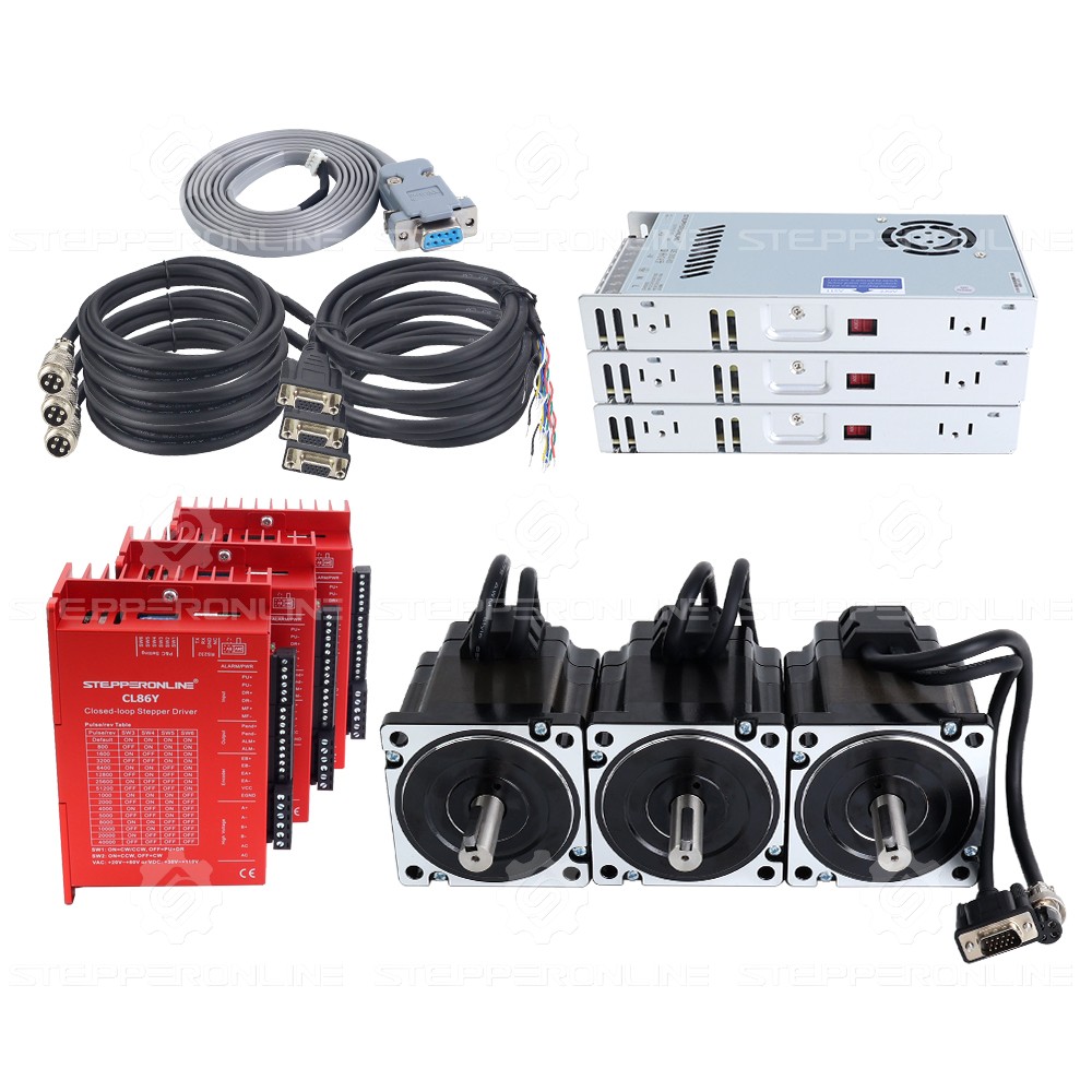 This CNC kit includes:1 x 23HS30-5004D-E1000: Nema 23 Closed Loop Stepper Motor 2.00Nm(283.22oz.in) Encoder 1000PPR(4000CPR)1 x CL57Y-V20: Y Series V2.0 Closed Loop Stepper Driver 0-7.0A 24-50VDC for Nema 17, 23, 24 Stepper Motor1 x LRS-200-36: MEAN WELL 200W 36VDC 5.9A 115/230VAC Enclosed Switching..