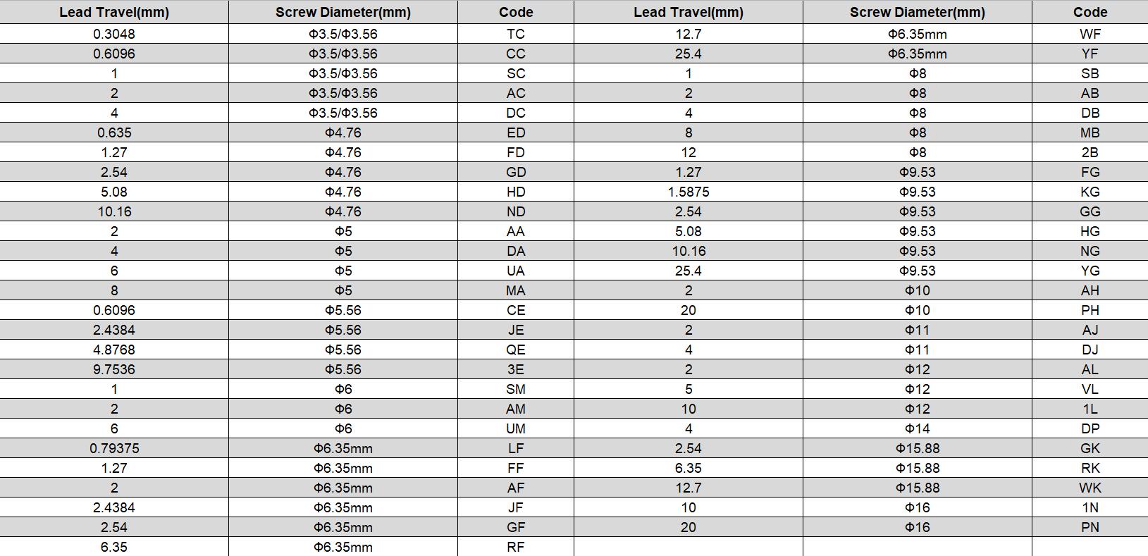 ⑧ Lead Screw/Ball Screw Code | Please see below lead screw code selection table individually | ||||||||